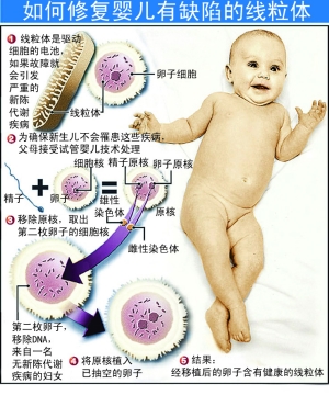 這項(xiàng)研究的重點(diǎn)是卵子細(xì)胞中的線粒體。線粒體游離于細(xì)胞質(zhì)中,是細(xì)胞進(jìn)行呼吸作用的場(chǎng)所,有細(xì)胞“動(dòng)力工廠”之稱。嬰兒胚胎中的線粒體遺傳自卵子細(xì)胞,如果母體線粒體本身有基因缺陷,新生兒就易出現(xiàn)肌肉萎縮、癲癇、中風(fēng)、糖尿病、失聰、失明、肝功能衰竭和智力發(fā)育遲緩等各類疾病。