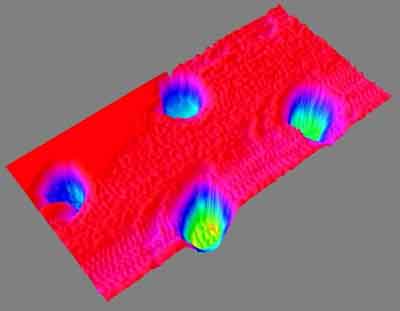 在美國(guó)宇航局網(wǎng)站公布的一幅照片上,位于顯微鏡硅襯底上的4個(gè)土壤顆?瓷先ハ4個(gè)小球,而實(shí)際上每個(gè)顆粒的直徑僅為1微米,相當(dāng)于1米的一百萬分之一。這樣的觀測(cè)精細(xì)度只有原子力顯微鏡才能達(dá)到,而且它可以對(duì)顆粒進(jìn)行三維觀測(cè)。