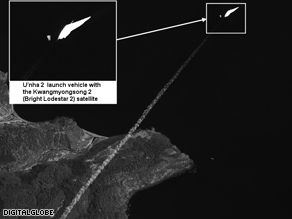 總部在華盛頓的科學與國際安全研究所(TheInstitute for Science and International Security)公布了Digital Globe拍攝的衛(wèi)星照片,顯示從火箭燃燒的推進劑噴出的羽流和火焰。