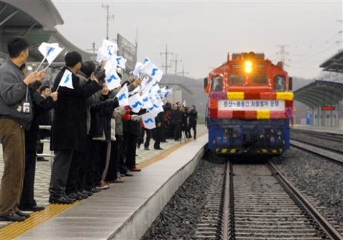 這是10月間韓國總統(tǒng)盧武鉉和朝鮮最高領(lǐng)導(dǎo)人金正日高峰會的具體成果,也是半個多世紀(jì)來,朝韓之間,首次有貨運(yùn)火車行駛。這條貨運(yùn)列車,將掛12節(jié)車廂,每天往返一次,早去晚歸,只載貨、不載乘客。