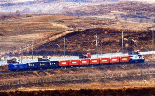 中新網(wǎng)12月11日電 綜合報(bào)道,跨越朝鮮和韓國邊界、連接雙方國土的定期貨運(yùn)火車11日正式開行。
