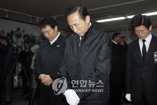 韓總統(tǒng)當(dāng)選人李明博慰問冷庫(kù)爆炸遇難者家屬(圖)