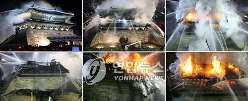 韓國(guó)第一號(hào)國(guó)寶“崇禮門”燒毀塌落損失慘重(圖)