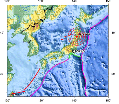 另據美國地質勘探局表示,地震震中位于仙臺市以北約100公里的秋田境內離地面10公里處;在震中南面390公里的首都東京也有震感,樓宇搖晃。據共同社報道,區(qū)內所有新干線服務自動停運,仙臺市地鐵也全線停運,宮城縣內的高速公路全部被封鎖。