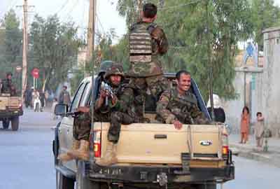 阿富汗士兵15日在坎大哈街頭巡邏。