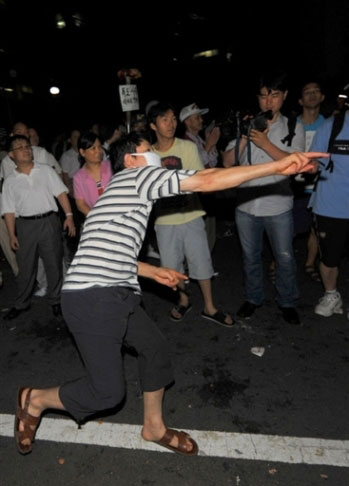 至今一直參與反對(duì)重新進(jìn)口美國(guó)產(chǎn)牛肉的工會(huì)組織等也加入到抗議活動(dòng)中來,他們向日本大使館投擲了雞蛋,加入到抗議活動(dòng)中的人數(shù)每天都在增加。