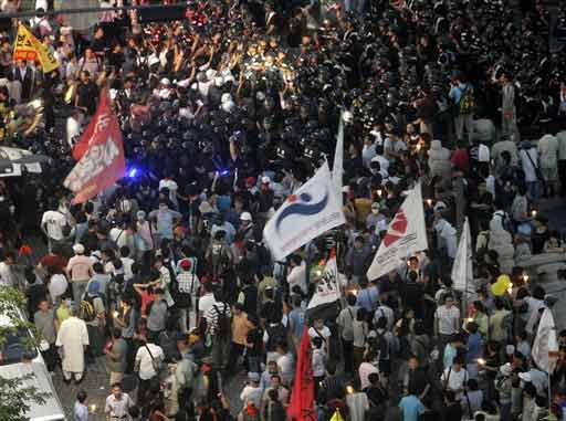 中新網8月6日電 美國總統(tǒng)布什乘坐“空軍一號”展開亞洲3國訪問,5日飛抵首爾開始20小時旋風式訪問。約2萬名反對美國牛肉入口的示威者上街示威,當局部署1.8萬警力戒備,防暴警察曾向數(shù)千示威者發(fā)射水炮,并拘捕約70人。