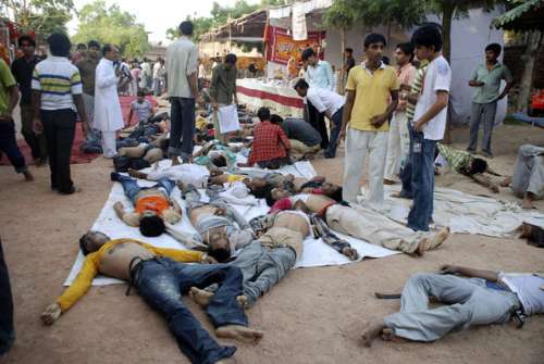 在印度,信仰印度教的教徒每逢宗教節(jié)日有舉家到廟宇祭拜的習(xí)俗。許多廟宇年久失修,且都建于山頂,周?chē)缆藩M窄,加上當(dāng)?shù)鼐绞栌诠芾,以致每年宗教?jié)日期間幾乎都會(huì)發(fā)生人踩人慘劇。