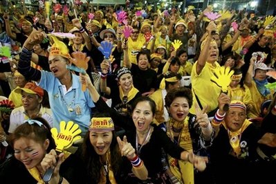 中新網(wǎng)10月10日電 綜合報(bào)道,泰國(guó)逾2000人9日在首都曼谷購(gòu)物區(qū)示威,要求總理頌猜辭職。被捕的2名示威領(lǐng)袖當(dāng)日獲保釋外出,出獄后返回示威者占據(jù)的總理府,上臺(tái)時(shí)獲數(shù)千名示威者歡呼和鼓掌歡迎。