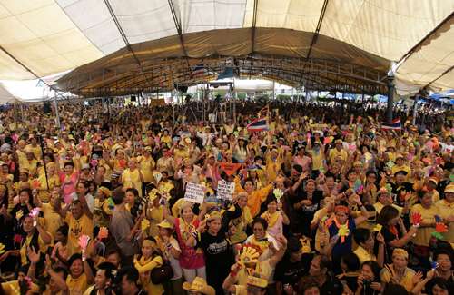泰國人民民主聯(lián)盟示威者聞及他信獲罪,興奮不已。