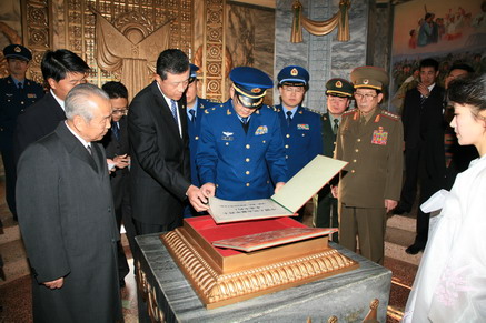 中朝兩國(guó)人員在友誼塔前向烈士們默哀致意,并在儀式后參觀了友誼塔。崔永林秘書(shū)長(zhǎng)、劉曉明大使和宋琨團(tuán)長(zhǎng)等翻閱了保存在友誼塔內(nèi)的志愿軍烈士名冊(cè)。崔永林說(shuō),58年前,中國(guó)人民志愿軍入朝作戰(zhàn),與朝鮮人民和軍隊(duì)并肩戰(zhàn)斗,一同打敗了侵略者。朝鮮黨、政府和人民十分珍視兩國(guó)人民和兩國(guó)軍隊(duì)用鮮血凝成的深厚友誼,對(duì)中國(guó)人民志愿軍的豐功偉績(jī)永志不忘。劉大使感謝朝方為中國(guó)人民志愿軍入朝參戰(zhàn)58周年舉行紀(jì)念活動(dòng),并表示中朝兩國(guó)人民在保衛(wèi)家園、維護(hù)和平的共同事業(yè)中結(jié)下了深厚的友誼。在兩國(guó)最高領(lǐng)導(dǎo)人的親切關(guān)心下,兩國(guó)人民繼承和發(fā)揚(yáng)這一友好傳統(tǒng),使兩國(guó)友好合作關(guān)系不斷得到深化和發(fā)展。