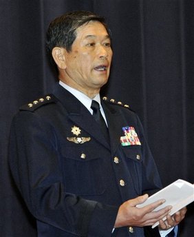 日本新上任的的航空幕僚長(zhǎng)外薗健一發(fā)表演說(shuō)。
