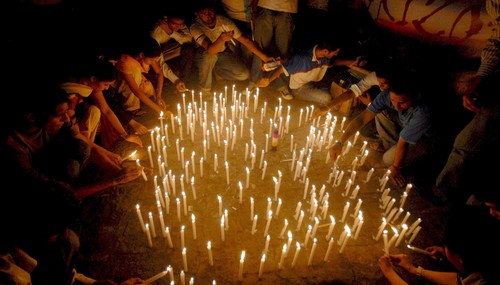 印度兒童點燃蠟燭為孟買恐怖襲擊遇害者哀悼