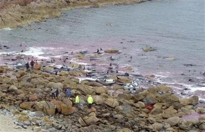 大規(guī)模的鯨魚擱淺在澳大利亞和新西蘭不時發(fā)生,原因不明。理論認(rèn)為可能是由于人類海上活動所使用的回聲定位系統(tǒng)發(fā)出的信號干擾所致。