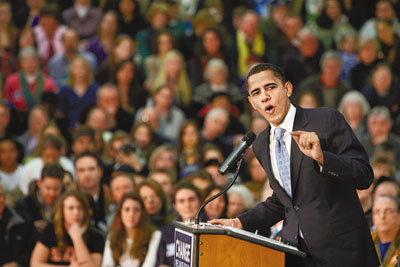 奧巴馬在艾州黨派會(huì)議勝出后氣勢(shì)如虹,轉(zhuǎn)戰(zhàn)新州乘勝追擊,他繼續(xù)大打變革牌,向支持者承諾為國家?guī)磙D(zhuǎn)變,希望新州選民支持他,“四天后的新州,你有機(jī)會(huì)令美國改變”。