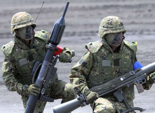 日本陸上自衛(wèi)隊上月在靜岡縣舉行軍事演習。