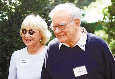 自此,巴菲特埋頭在生意上以掩蓋這段傷痛,他也沒(méi)將這不光彩的一頁(yè)告訴任何人。不過(guò)直至蘇珊2004年去世前,二人從未離婚。前年巴菲特76歲生日時(shí),才與門克斯秘密結(jié)婚。