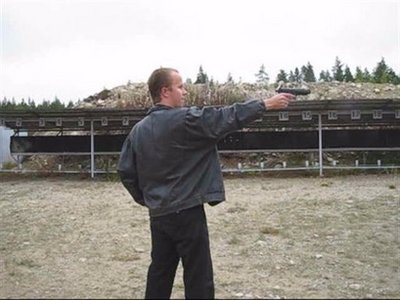 薩里在射擊場練槍.