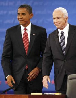 中新網(wǎng)10月16日電 綜合報道,美國共和黨總統(tǒng)候選人麥凱恩和民主黨總統(tǒng)候選人奧巴馬于美東時間15日晚上9時(北京時間16日早上9時)在紐約霍夫斯特拉大學展開總統(tǒng)選舉投票前的最后一場電視辯論。