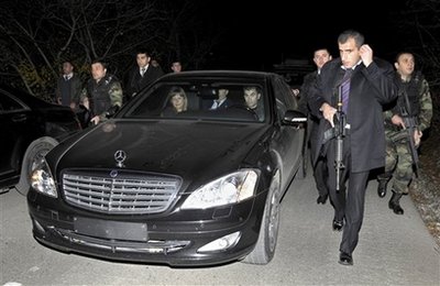 載有薩卡什維利的汽車在大批保安掩護下撤離槍擊事件現(xiàn)場。