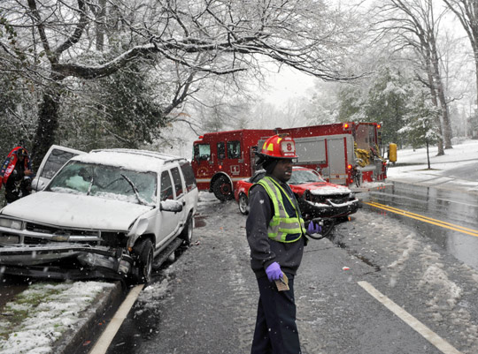 雖然沒有重大傷亡,但暴雪導致路面濕滑,引發(fā)很多交通意外。田納西州西部的I-40高速公路以及東部接近肯塔基州的一段公路,發(fā)生一連串車禍,引致交通大擠塞。