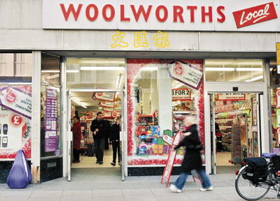 英國100周年的超市Woolworths有800間分店。圖為其中一間。