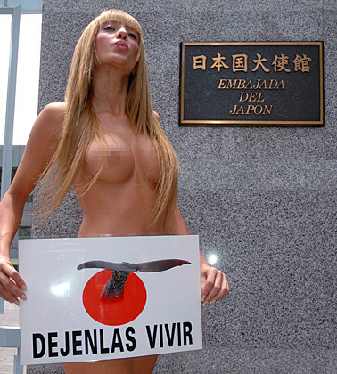 中新網(wǎng)12月3日電 綜合報(bào)道,12月1日,阿根廷模特Vanessa Carbone裸體手持“讓它們活下去”的牌子站在日本駐圣地亞哥大使館門(mén)前抗議捕鯨和非法販運(yùn)獸皮。這個(gè)抗議活動(dòng)要求智利政府下令宣布其在太平洋的領(lǐng)海為鯨魚(yú)保護(hù)區(qū)。