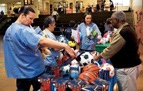 中新網(wǎng)12月25日電 據(jù)香港大公網(wǎng)報道,美國一座女子監(jiān)獄為囚犯安排了一場圣誕購物,設(shè)置了一個放滿廉價貨品的臨時“商店”,讓她們過過購物癮,獄中媽媽更可在這活動中與子女享享天倫之樂。