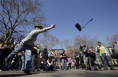 中新網(wǎng)4月2日電 失業(yè)讓人心情郁悶,紐約日前舉辦了一場(chǎng)“失業(yè)奧運(yùn)會(huì)”(Unemployment Olympics),數(shù)十名的失業(yè)人士在“你被炒魷魚(yú)了”項(xiàng)目競(jìng)跑,將滿(mǎn)腔憤怒化為力道,在“丟辦公室電話(huà)”競(jìng)賽中拋出好成績(jī)。
