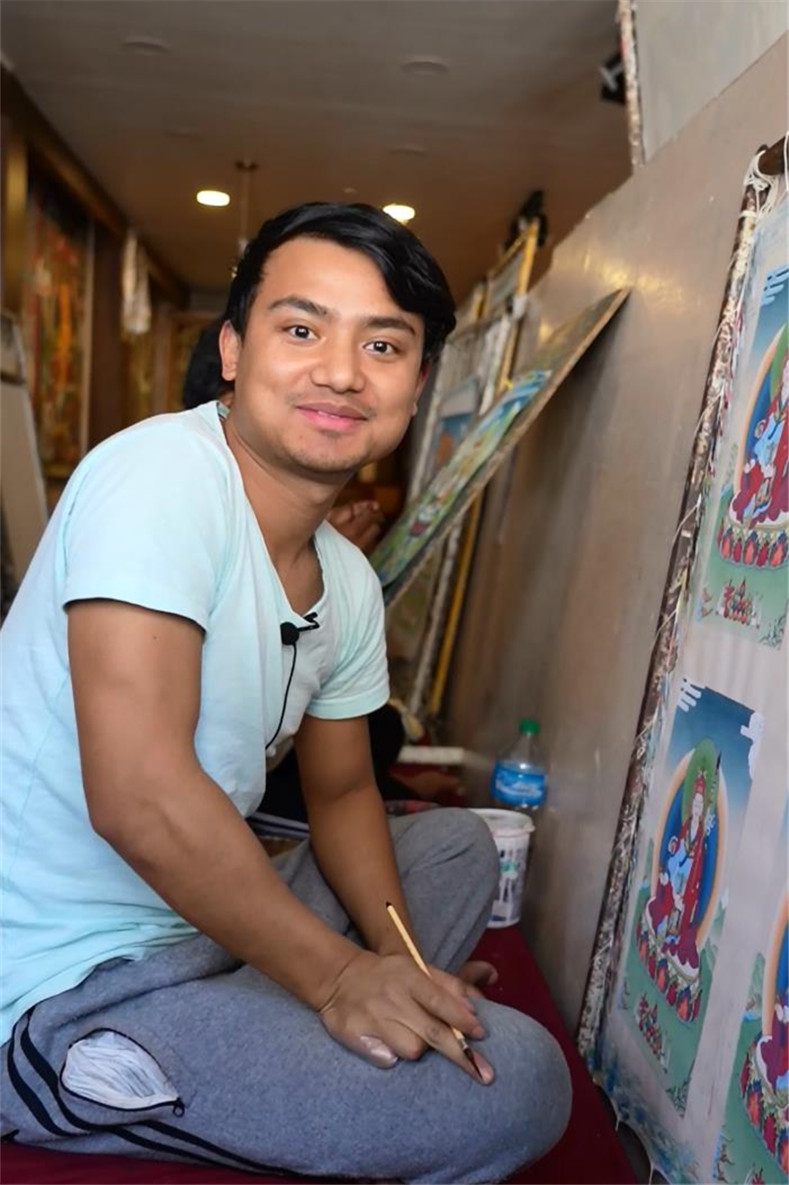 唐卡在尼泊爾是高端旅游紀(jì)念品之一。尼泊爾年輕唐卡畫師說(shuō),“從高中開始就從事唐卡繪畫工作,如今已經(jīng)七八年了。”他的師父介紹,“中國(guó)朋友很喜歡尼泊爾藝術(shù)家和他們的作品,希望我們能很快見面。”