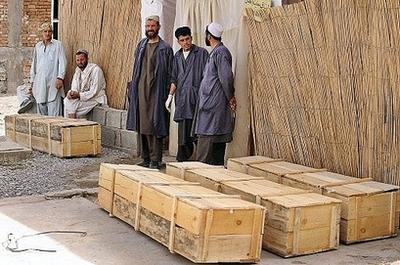 阿富汗醫(yī)務(wù)人員站在三名遇難女性的靈柩旁邊。