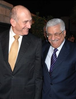 奧爾默特(左)與阿巴斯舉行會晤,再商巴以和平進程。