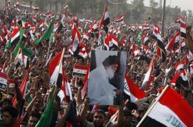 示威者響應什葉派政治人物薩德爾的號召,一大早在巴格達東部薩德爾城的穆扎法爾廣場聚集。大部分示威者是年輕人,也有一些婦女和兒童。他們揮舞著伊拉克國旗,手舉薩德爾畫像,高喊“侵略者滾出去!我們不要駐軍地位協(xié)議!”等口號,一直游行到約3公里外的穆斯坦西里亞廣場。