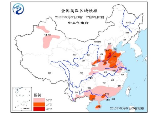 7~8日,北京中南部、河北中南部、山東大部、河南、山西南部、陜西中南部、湖北北部、安徽中北部、江蘇大部、四川盆地東北部、重慶北部等地的部分地區(qū)有35~38℃的高溫天氣,其中,河北南部、山東西北部、河南東北部等地的局部地區(qū)最高氣溫可達(dá)40℃左右。未來三天,江南南部、華南大部、云南南部等地的部分地區(qū)也將有35~37℃的高溫天氣。