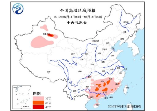 中新網(wǎng)7月13日電 中央氣象臺7月13日18時(shí)繼續(xù)發(fā)布高溫藍(lán)色預(yù)警:預(yù)計(jì),明天白天,重慶南部、貴州東部、湖南中南部、江西中南部、福建大部、廣東大部、廣西大部、海南北部、臺灣西北部等地有35℃以上高溫天氣,局地溫度將達(dá)37~38℃。