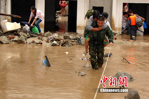14日中午12點30分,阿壩支隊廖軍支隊長率郭興武參謀長等救援官兵從馬爾康驅(qū)車到達汶川徹底關(guān)大橋災(zāi)害現(xiàn)場,通過實地查看和詢問當(dāng)?shù)厝罕姷弥恒氪ㄉ称宏P(guān)村上銀杏組處泥石流阻斷河道形成堰塞湖,將國道213線淹沒200余米,最深處達4米。確認車輛、人員短時間尚無通行的可能后,根據(jù)查看情形當(dāng)機立斷,立即組織疏散轉(zhuǎn)移附近群眾,廖支隊長率領(lǐng)官兵爬山淌水,一戶一戶的走,一個工地一個工地說,使附近260余名群眾和工人安全轉(zhuǎn)移到地勢較高的安全地段。