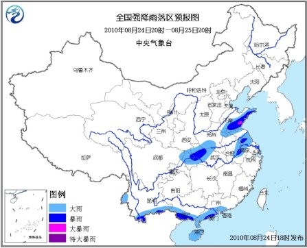 中新網(wǎng)8月24日電 據(jù)中央氣象臺報道,中央氣象臺8月24日18時繼續(xù)發(fā)布暴雨藍(lán)色預(yù)警:8月24日20時到25日20時,重慶東北部、湖北中西部、河南西南部、山東東部和南部、江蘇、安徽東部、廣東南部、海南、廣西南部、云南南部和西部等地的部分地區(qū)有大雨或暴雨,其中,山東南部局地有大暴雨;上述地區(qū)局部并伴有短時雷雨大風(fēng)等強(qiáng)對流天氣。