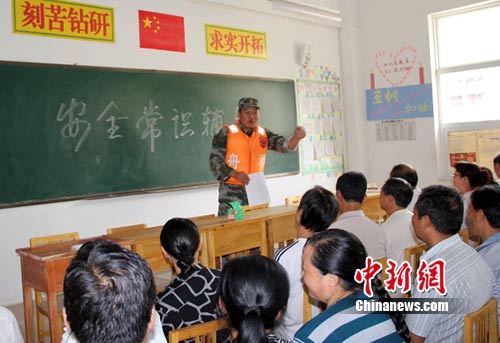 中新網(wǎng)舟曲9月1日電 (劉鵬)1日下午,是甘肅舟曲災(zāi)區(qū)新學(xué)期開(kāi)學(xué)的日子,蘭州軍區(qū)某集團(tuán)軍舟橋團(tuán)的教官們采取理論輔導(dǎo)、觀看示意圖、動(dòng)作練習(xí)、模擬演練等方式,對(duì)舟曲城關(guān)小學(xué)600多師生展開(kāi)了一場(chǎng)緊急避險(xiǎn)演練培訓(xùn)。演練培訓(xùn)包括火災(zāi)、洪災(zāi)、地震、泥石流等災(zāi)害發(fā)生時(shí)怎樣避險(xiǎn)、逃生等。