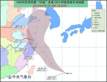 下午14時(shí),其中心在浙江象山東南方大約1135公里的西北太平洋洋面上(北緯23.2度,東經(jīng)130.9度),中心附近最大風(fēng)力有8級(jí)(18米/秒),中心氣壓998hPa。