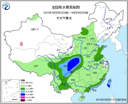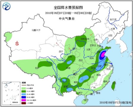 中新網(wǎng)9月7日電 據(jù)中央氣象臺預(yù)報,未來三天,全國降水范圍較大,其中,山東東部和南部、安徽北部、江蘇北部、湖北東部和西南部、湖南北部、四川中東部、重慶大部、云南東部、甘肅東南部、陜西南部、福建中南部、廣東東部及臺灣等地有大雨或暴雨,局部地區(qū)有大暴雨,上述部分地區(qū)并伴有短時雷雨大風(fēng)等強對流天氣。