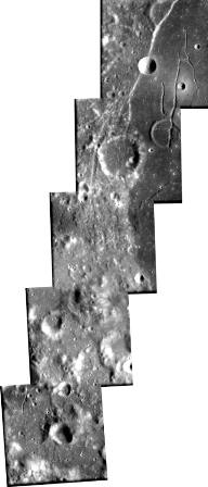 這組照片從南到北展示了一個典型的古老月球撞擊高地的過渡過程。在圖中可以看到右上方有一部分平坦的火山巖平原,它展示了濕海底層的一部分。在頂端有一個被斷層切開的碗狀月坑,它被稱為“李比希F”月坑(Liebig F),其直徑約為9千米。