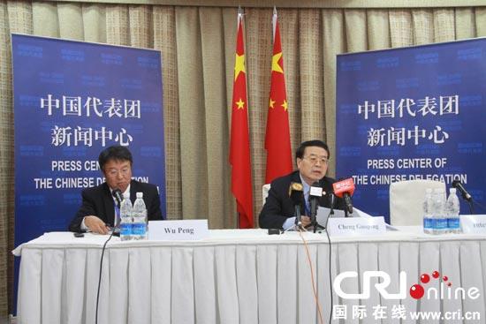 中國(guó)外交部副部長(zhǎng)程國(guó)平(右)召開新聞發(fā)布會(huì)