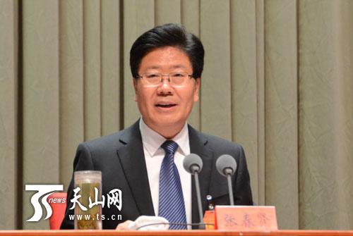 中共中央政治局委員、自治區(qū)黨委書記張春賢在會上講話。