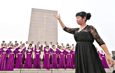 為紀(jì)念全民族抗戰(zhàn)爆發(fā)77周年,昨天下午六點(diǎn),由北京市委宣傳部主辦,豐臺(tái)區(qū)委、豐臺(tái)區(qū)政府承辦的“勿忘國恥,圓夢(mèng)中華”首都各界群眾歌詠活動(dòng)在中國人民抗日戰(zhàn)爭紀(jì)念雕塑園中心廣場內(nèi)舉行。 新京報(bào)記者 李禹潼 薛珺 攝影報(bào)道