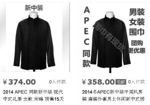 APEC會(huì)議上首次亮相的“特色中式服裝”,引起了社會(huì)公眾的關(guān)注,一些網(wǎng)店的掌柜迅速“嗅到”商機(jī),紛紛推出同款服裝(如圖)。昨天,服裝面料供應(yīng)商表示只提供私人定制,其他商家無(wú)權(quán)使用同款面料,網(wǎng)上熱銷(xiāo)的同款服裝均為仿制。