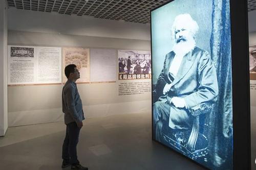 上海中共一大紀(jì)念館內(nèi)的“德先生和賽先生”浮雕?!暗孪壬唾愊壬币鉃椤懊裰骱涂茖W(xué)”,是中國新文化運(yùn)動(dòng)期間的兩面旗幟。中新社發(fā) 周升輝 攝