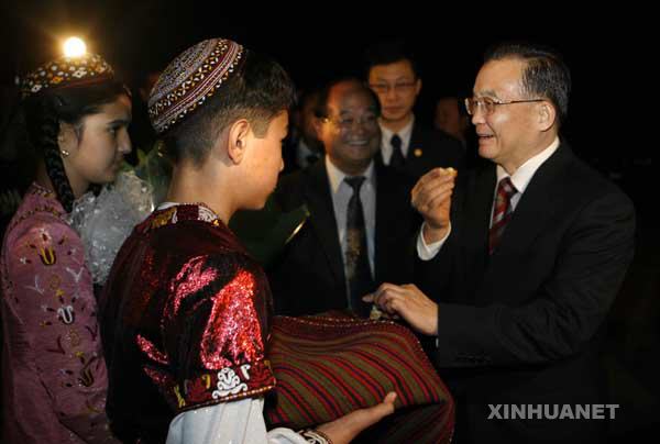 會(huì)談前,別爾德穆哈梅多夫在總統(tǒng)府外廣場(chǎng)為溫家寶總理來(lái)訪(fǎng)舉行隆重歡迎儀式。