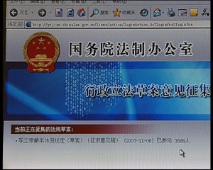今天距離國務(wù)院法制辦《職工帶薪年休假規(guī)定(草案)》的征求意見稿發(fā)布,已經(jīng)過去了三天,那么最新的回饋如何呢?記者登陸了國務(wù)院法制辦的網(wǎng)站,發(fā)現(xiàn)短短三天,參與發(fā)表意見的人數(shù)超過了3600人,法制辦的工作人員告訴記者,同期在網(wǎng)上征求意見的法規(guī)草案還有一些,但是對這些草案參與發(fā)表意見的人數(shù)并不多,最多的195人,最少的只有18人?梢姡啾戎聨叫菁俨莅副旧淼年P(guān)注度遠(yuǎn)比其他法規(guī)草案高出很多。