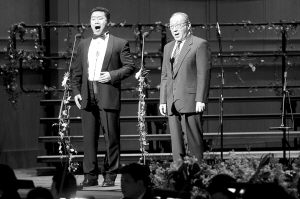 近三個小時的講座結束后,李嵐清把《李嵐清音樂筆談》、《李嵐清教育訪談錄》分別贈送給上海大劇院、中歐國際工商學院及復旦大學上海視覺藝術學院。他還來到師生們中間,聆聽指揮家陳燮陽執(zhí)棒上海交響樂團演奏約翰.斯特勞斯的《藍色多瑙河》、貝多芬的《第九交響曲》中的《歡樂頌》,以及意大利作曲家羅西尼的歌劇《威廉.退爾》序曲。
