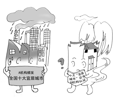 爭議之二,評選結(jié)果頻頻鬧出“烏龍”事件。最典型的例子是2005年,重慶市剛被某商業(yè)機(jī)構(gòu)高調(diào)評為“中國十大宜居城市”沒幾天,環(huán)?偩志统鼍邎(bào)告,認(rèn)定重慶屬于“十大污染城市”之列。